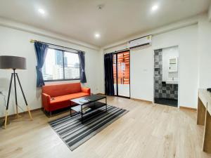 The room was spacious and clean, featuring a smart TV with access to streaming services. The location offered easy access to local shops, including a 7-Eleven and Lotus Go Fresh within minutes' walk. A small balcony provided outdoor space, while the quiet neighborhood ensured a relaxing stay. Facilities included coin-operated washer and dryer machines requiring 10 baht coins for use.