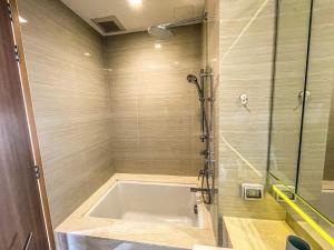 Das moderne Apartment mit einem Schlafzimmer in Bangkok verfügt über einen Dachpool und eine Sauna. Es liegt weniger als 1 km vom Emporium Einkaufszentrum entfernt und bietet einen Raum mit Stadtblick vom Balkon.