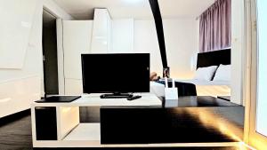 Das Apartment verfügt über ein Schlafzimmer mit einem Bett sowie eine voll ausgestattete Küche mit Kochnische und Minibar. Zur weiteren Ausstattung gehören Klimaanlage, Waschmaschine sowie eine private Sauna im Zimmer für zusätzlichen Komfort.