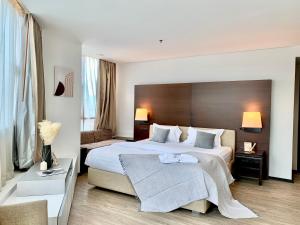 Each apartment comprises one living room, two separate bedrooms, and two bathrooms fitted with bathtubs as well as complimentary toiletries including slippers. Guests enjoy fully equipped kitchens featuring stovetops, refrigerators, microwaves, kitchenware, electric kettles and dining tables. Additional comforts include air conditioning, flat-screen TVs, washing machines and seating areas enhanced by tile or marble flooring.