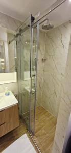 Inside the apartment, guests will find one bedroom with air conditioning and soundproof walls for added comfort. The living area includes a sofa seating arrangement alongside a flat-screen TV and work desk to suit both relaxation and productivity needs. The kitchen is fully equipped with a refrigerator, microwave, coffee machine, kitchenette facilities as well as a dining table.